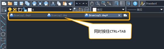 我们在打开多个图档文件的情况下,同时按住【Ctrl】和【Tab】键,即可实现在不同图档中快速切换。