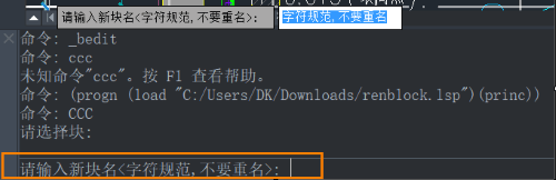 3.输入命令【ccc】回车,选择无名块,重新命名(其他相同的块会一起跟随命名)。