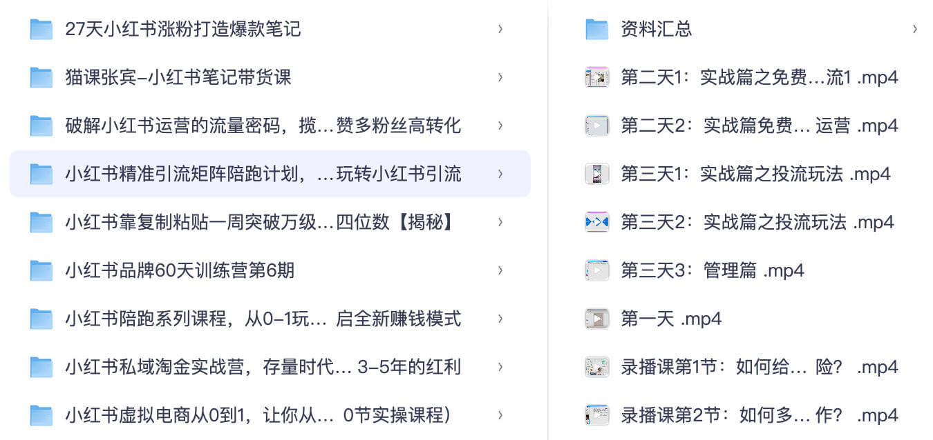 - 小红书私域淘金实战营:存量时代私域变现,抓住 3-5 年的流量红利;