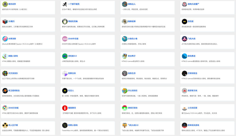 想摸鱼放松、亲子互动,或是找款小游戏锻炼反应力,却不想下载庞大客户端?今天整理了这份超全 H5 小游戏合集,覆盖经典复刻、休闲消除、益智闯关、射击竞技四大类,基于 html5、jquery 等技术开发,PC 与移动端双适配,即点即玩,无需安装,轻松解锁碎片化娱乐时光。