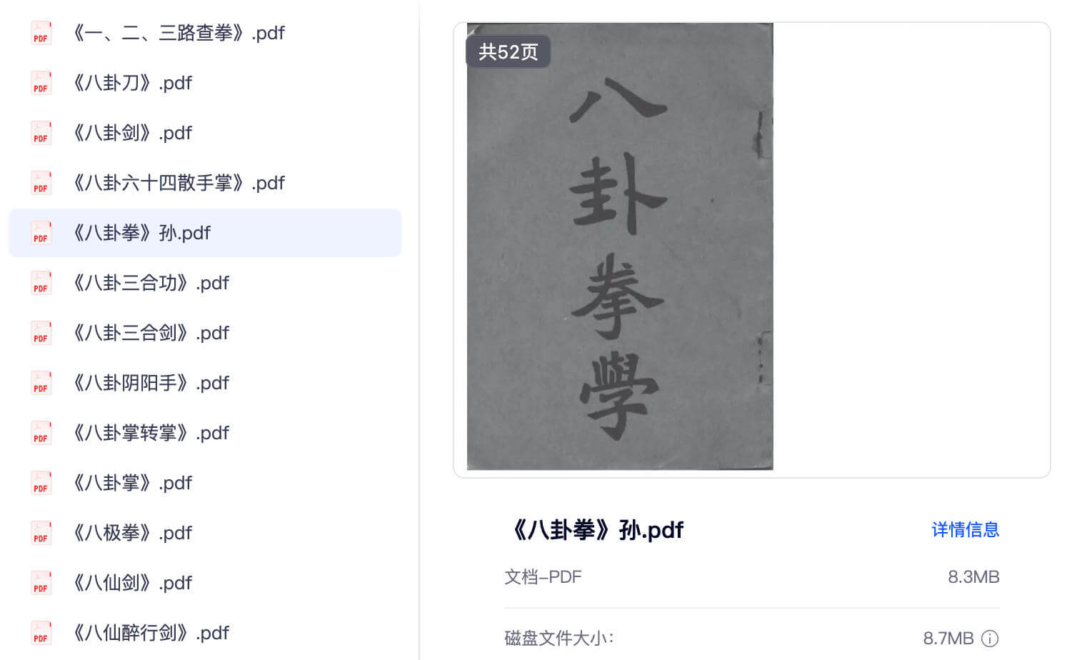 - 《八卦拳学》:52 页高清影印本,系统阐述八卦掌的拳理、拳架与修炼心法,是八卦掌传承的经典文献;