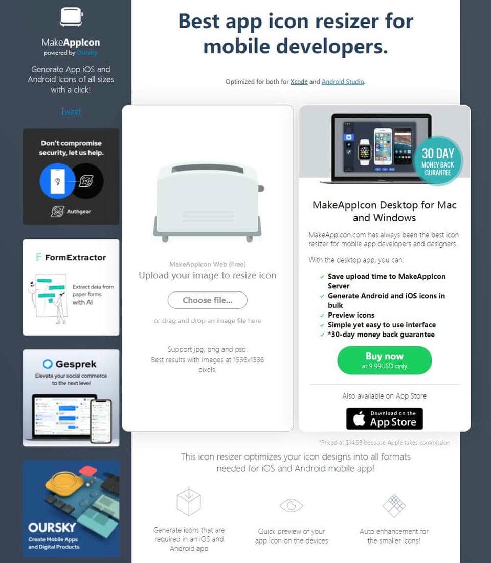 这个工具会自动为你的图标设计重新调整大小,依照 iOS 和 Android 手机 app 需要的格式进行最佳化。