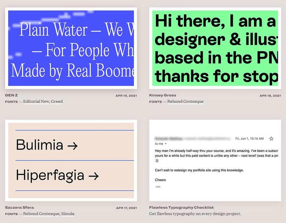 我还注意到,其他排版站点通常是从类型设计师的角度写的,而不是从在日常工作中实际使用类型的人的角度写的。我已经当了19年设计师,所以Typewolf上的所有内容都是从设计师的角度出发的。