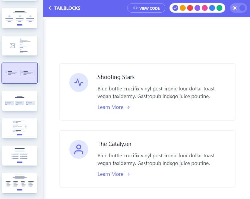 Tailblocks 具有更多高质量的Tailwind 组件。但是,它们提供了与引导类似的体验,因此你可以使用它们来创建整个网站。绝对是加快发展的必须。