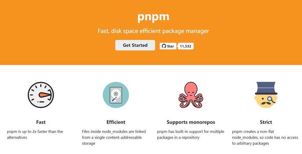 当使用 npm 或 Yarn 时,如果你有100个项目使用了某个依赖,就会有100份该依赖的副本保存在硬盘上。 对于 pnpm ,依赖项将存储在一个内容可寻址的仓库中,因此: