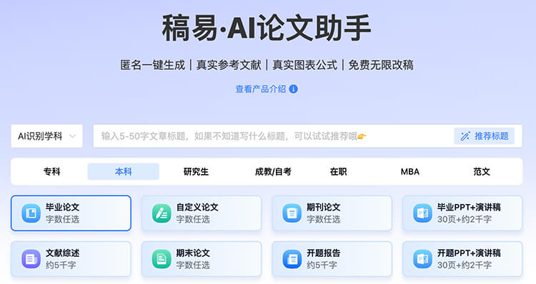 稿易是AI论文写作平台,10分钟产出3万字,提供真实网络数据、图、表、公式、代码,不限次2000字3级大纲,附带ppt、开题报告、任务书、40篇真实参考文献。