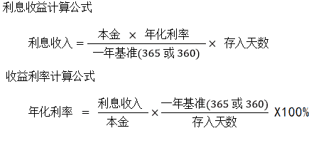 2、 年化收益(利息收入)和年化利率的计算公式: